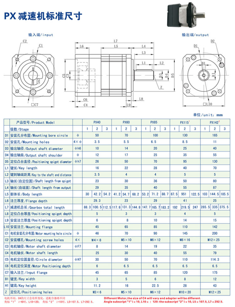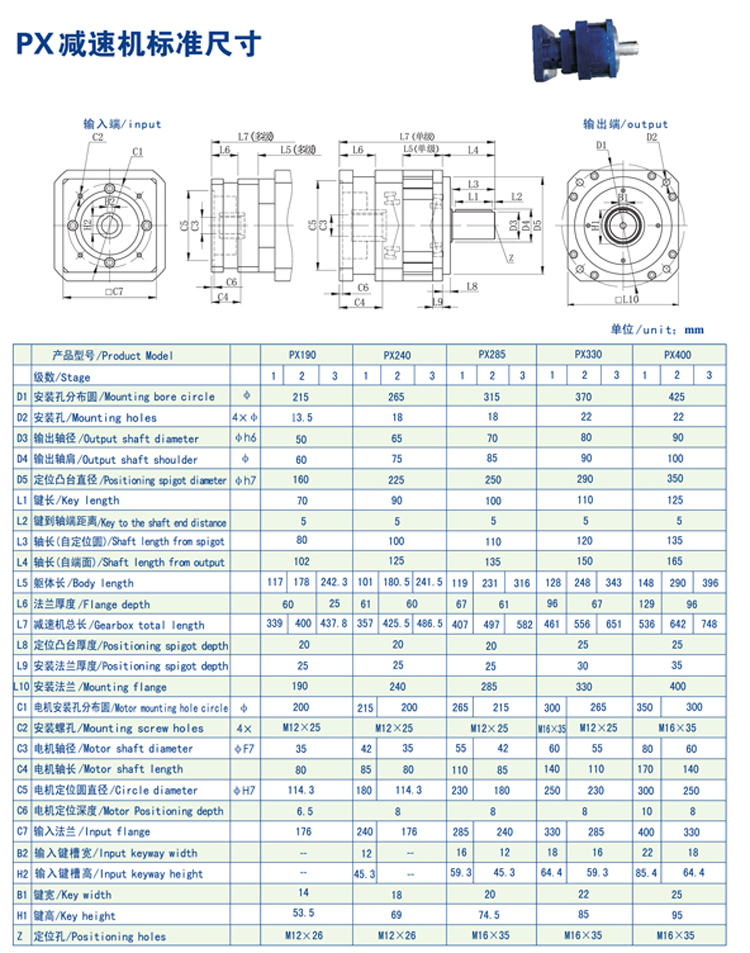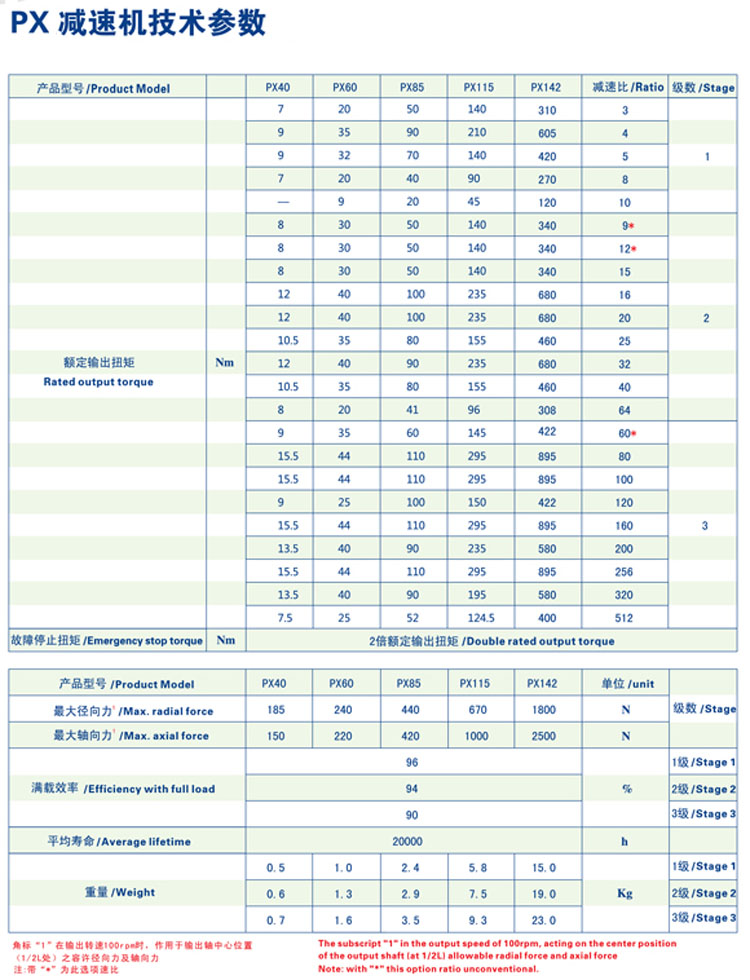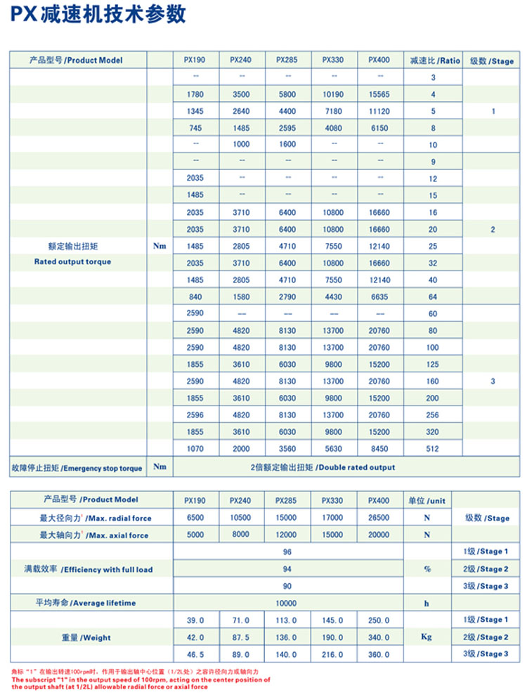 PX40,PX60,PX85,PX115,PX142,PX190,PX240,PX285,PX330,PX400,伺服减速机
