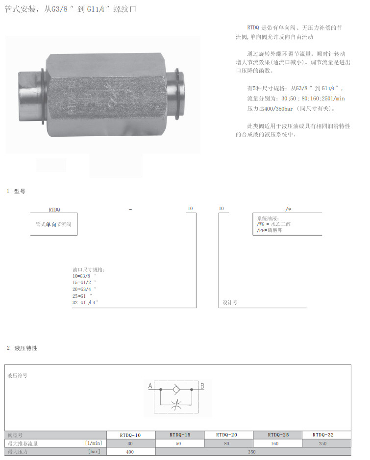 RTDQ-10-10,RTDQ-15-10,RTDQ-20-10,RTDQ-25-10,RTDQ-32-10,单向节流阀