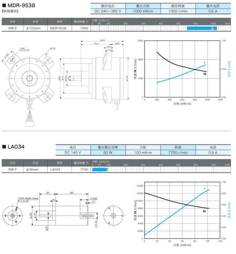 MDR-9538,LA034,LA052-040E,LA052-080E,LA052-110E,内转子直流无刷马达