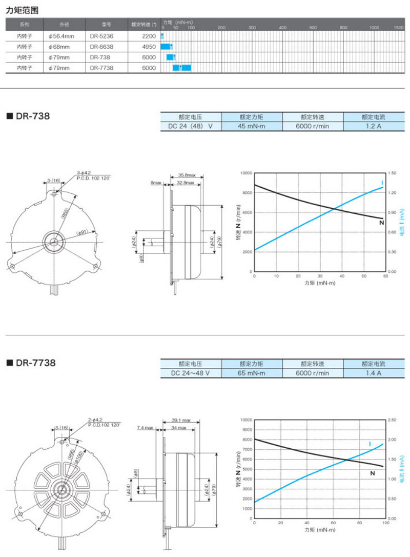 DR-5236,DR-6638,DR-738,DR-7738,内转子直流无刷马达