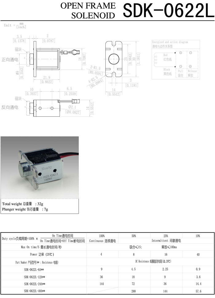 SDK-0622L-6A,SDK-0622L-12A,SDK-0622L-24A,SDK-0622L-48A,直动电磁铁