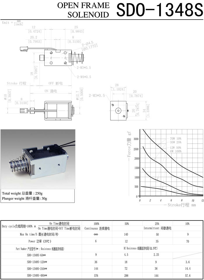SDO-1348S-6A,SDO-1348S-12A,SDO-1348S-24A,SDO-1348S-48A,直动电磁铁