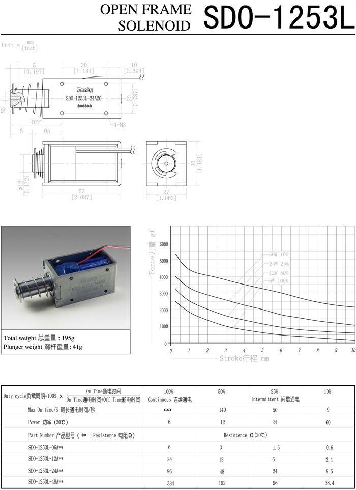 SDO-1253L-06A,SDO-1253L-12A,SDO-1253L-24A,SDO-1253L-48A,直动电磁铁