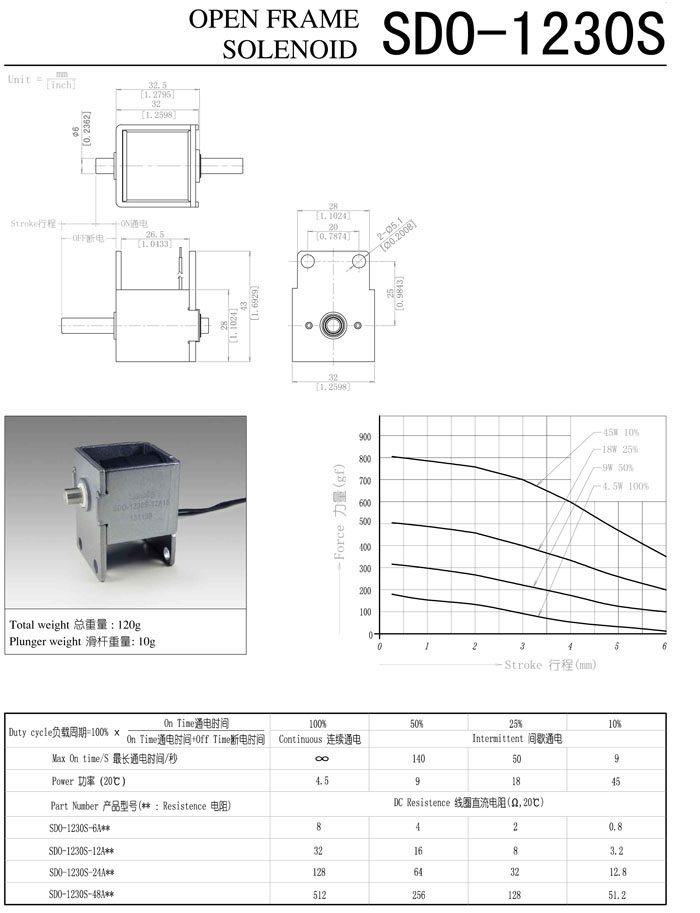 SDO-1230S-6A,SDO-1230S-12A,SDO-1230S-24A,SDO-1230S-48A,直动电磁铁