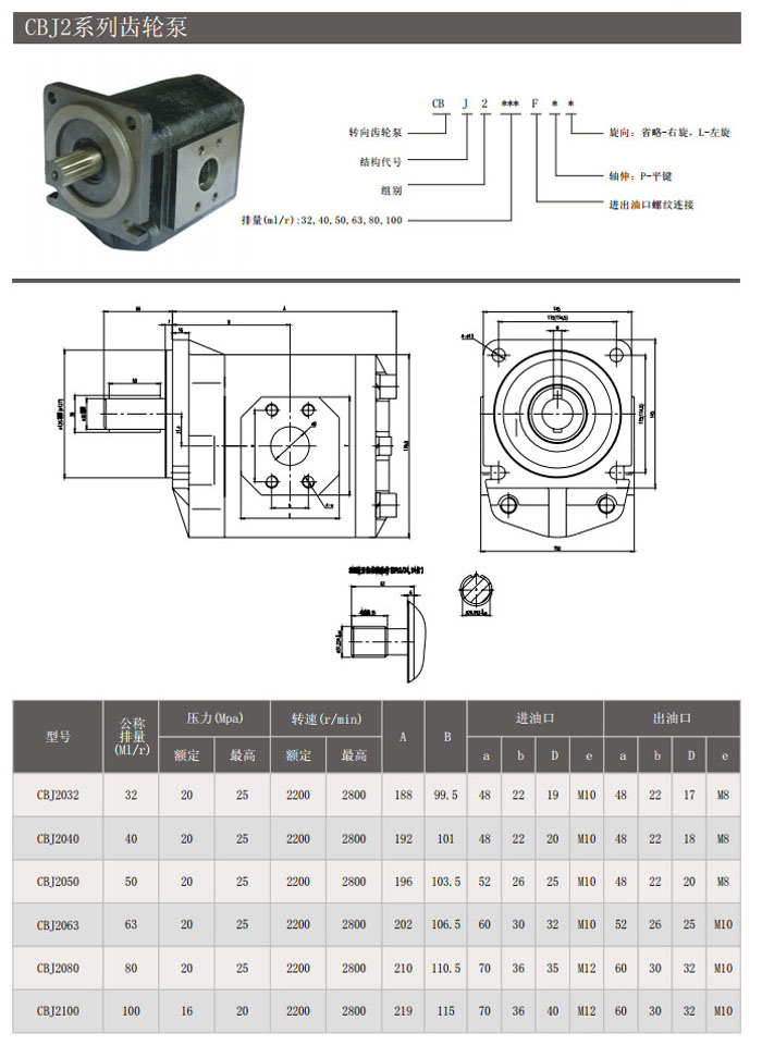 CBJ2032,CBJ2040,CBJ2050,CBJ2063,CBJ2080,CBJ2100,CBJ2063FPL,CBJ2032FP,齿轮泵