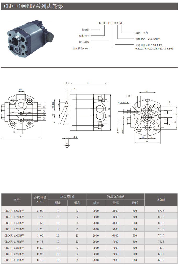 CBD-F10.75BRV,CBD-F10.50BRV,CBD-F10.25BRV,CBD-F10.16BRV,齿轮泵