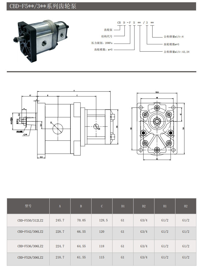 CBD-F550/312LZ2,CBD-F542/306LZ2,CBD-F536/306LZ2,CBD-F528/306LZ2,齿轮泵