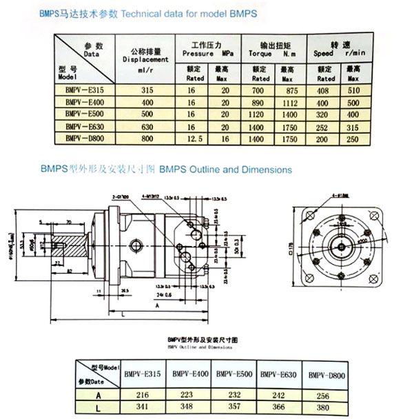 BMPV-E315,BMPV-E400,BMPV-E500,BMPV-E630,BMPV-E800,平面配油液压马达