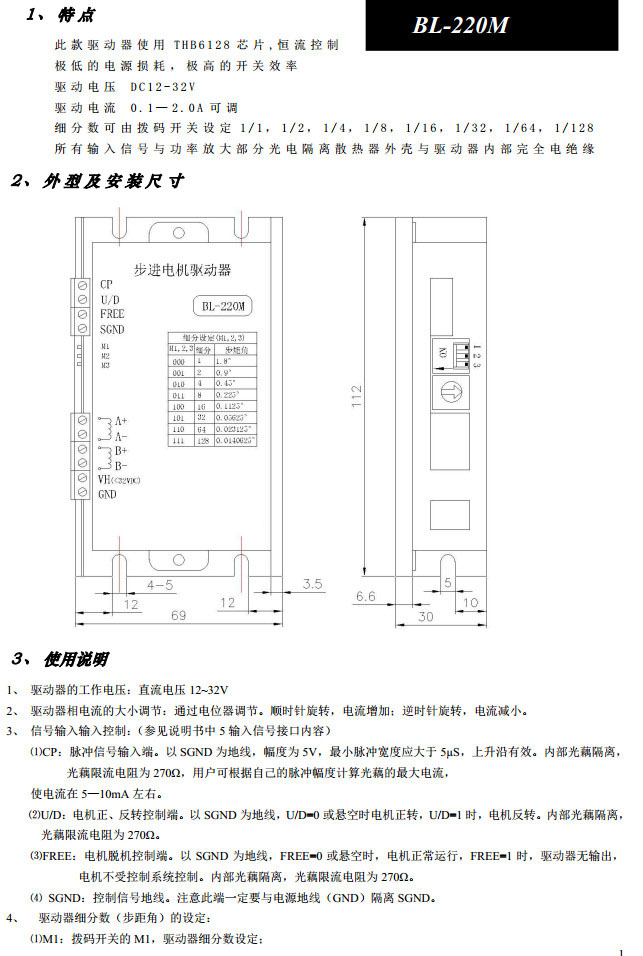 BL-220M,步进电机驱动器