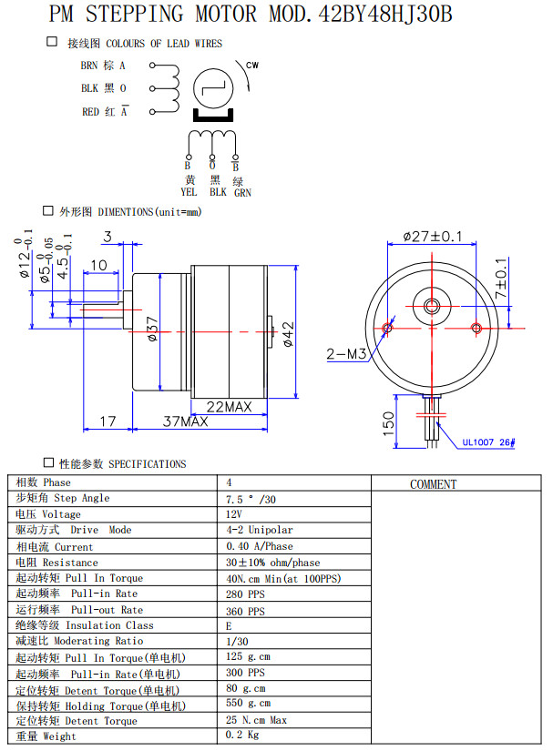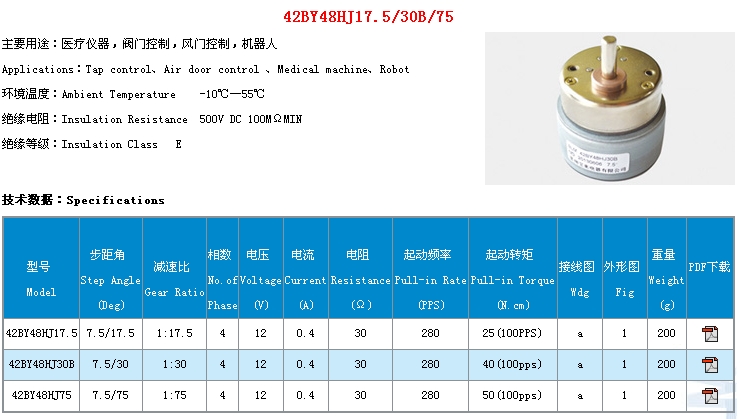 42BY48HJ17.5,42BY48HJ30B,42BY48HJ75,精密减速步进电机