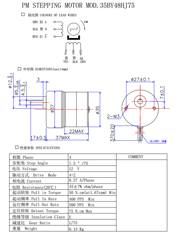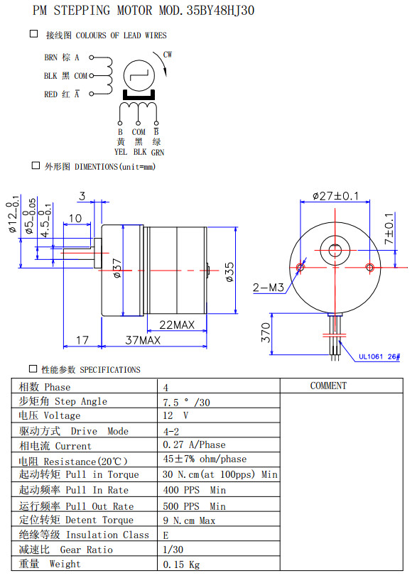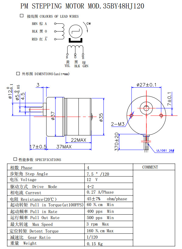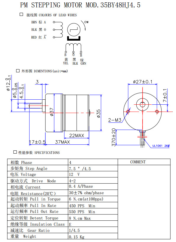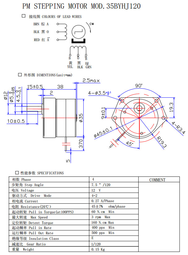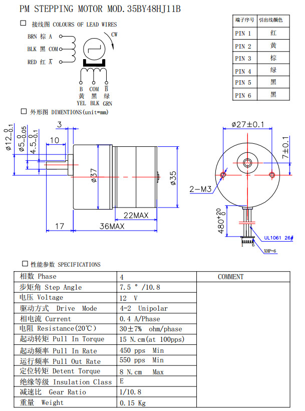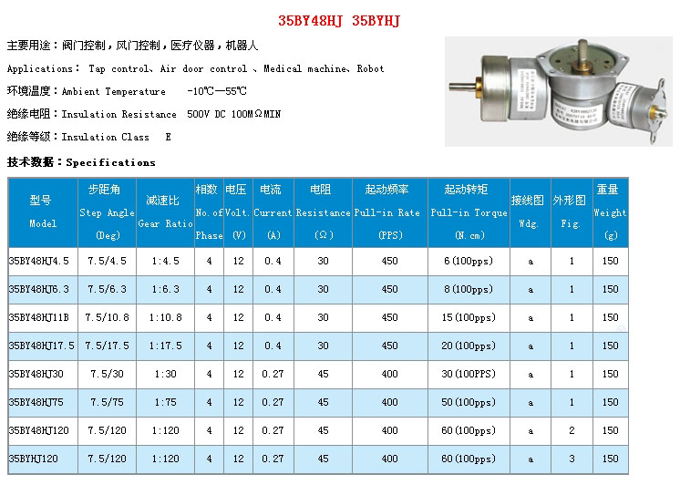 35BY48HJ4.5,35BY48HJ6.3,35BY48HJ11B,35BY48HJ17.5,精密减速步进电机