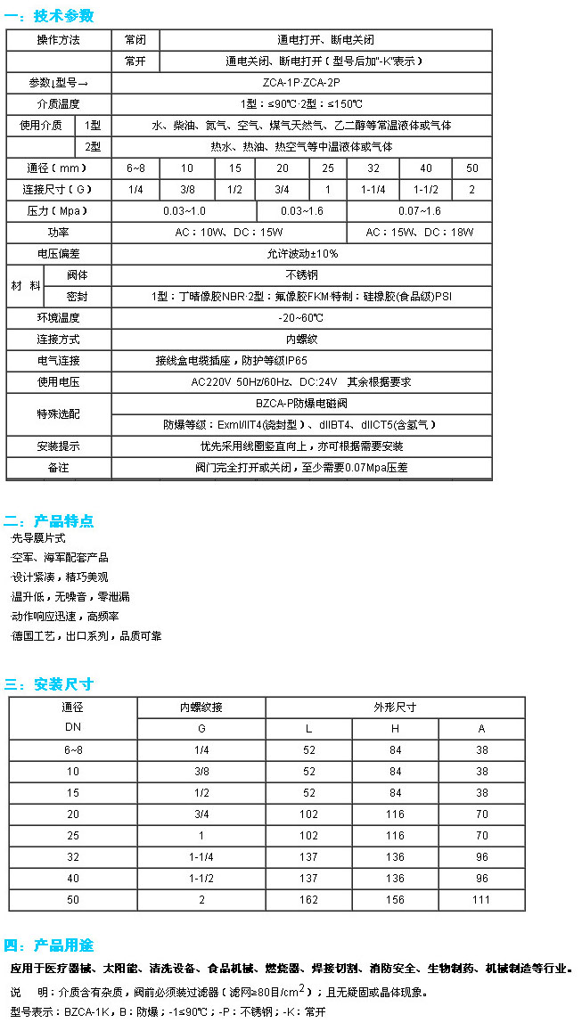 BZCA-1K-DN6,BZCA-1K-DN8,BZCA-1K-DN10,BZCA-1K-DN15,BZCA-1K-DN20,BZCA-1K-DN25,不锈钢电磁阀