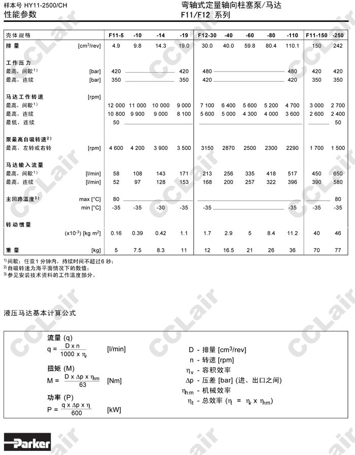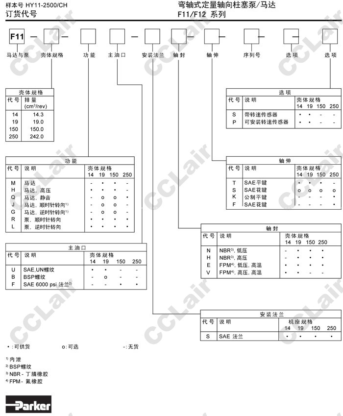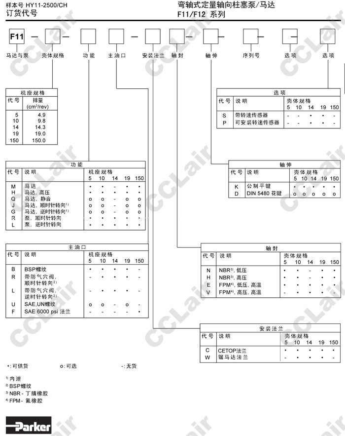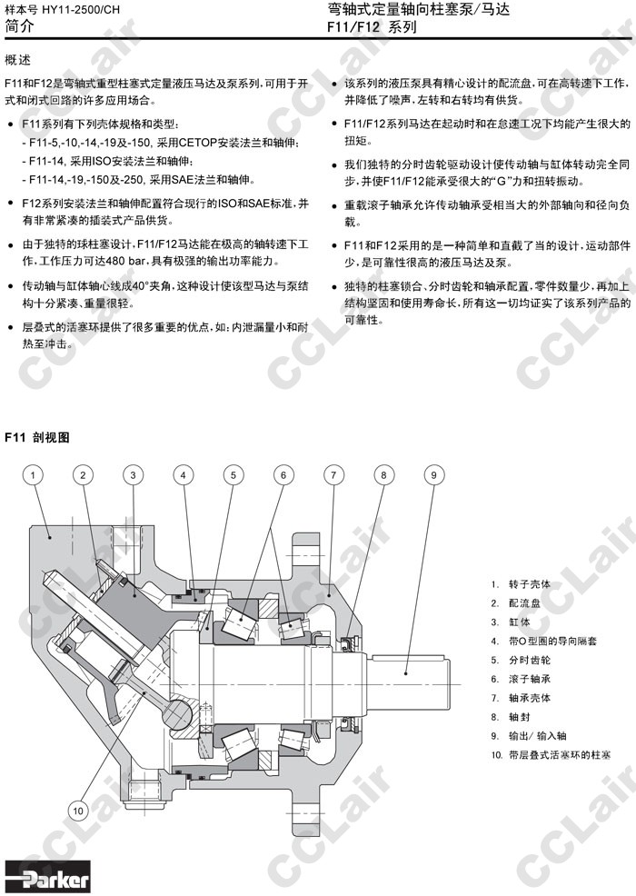 F11-005,F11-010,F11-014,F11-019,F11-150,F11-010-GL-CV-D,F11-150-MF-CN-K,Parker弯轴式定量轴向柱塞泵