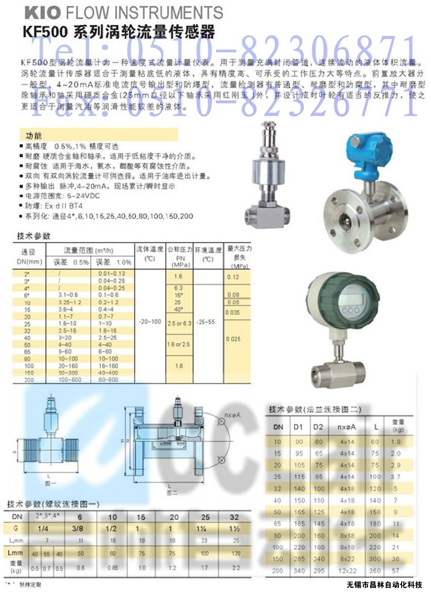 KF500-25,KF500-40,KF500-50涡轮流量传感器