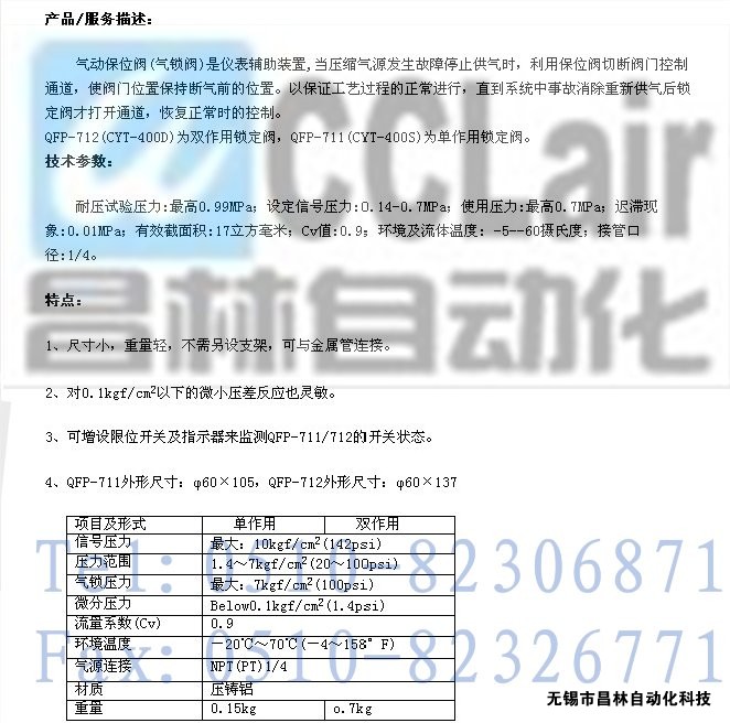 QFB-712,QFB-711,(CYT-400S,CYT-400D),气动保位阀(气锁阀),生产厂家,价格,昌林气动保位阀(气锁阀),气动保位阀(气锁阀)生产厂家,气动保位阀(气锁阀)价格