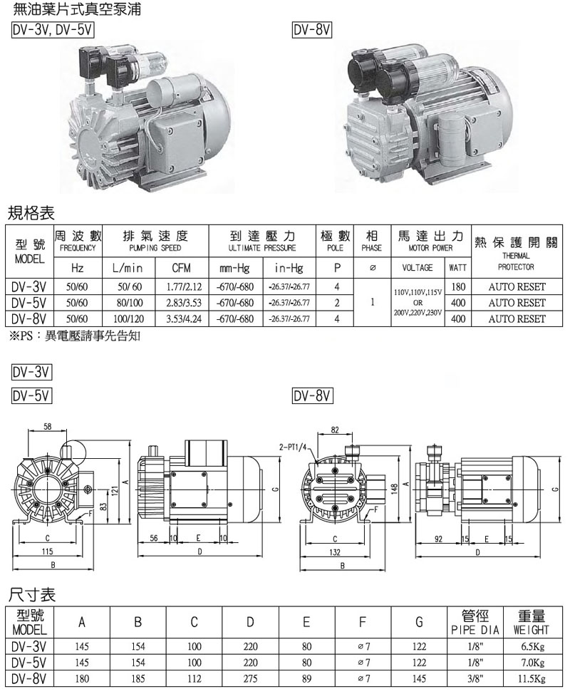 DV-3V,DV-5V,DV-8V,panix真空泵