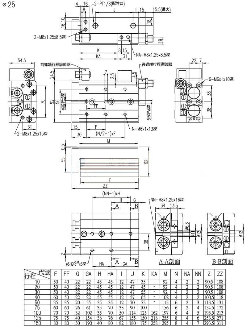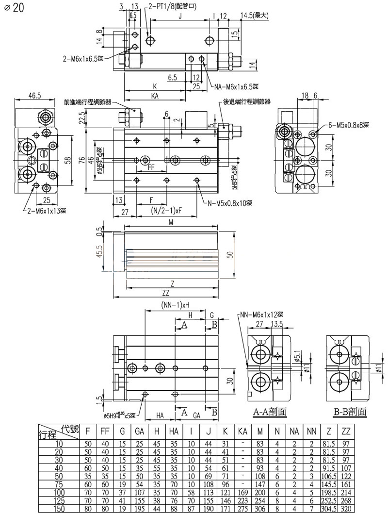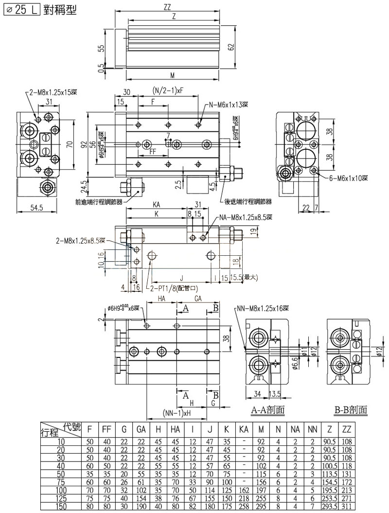 PXS-6,PXS-8,PXS-12,PXS-16,PXS-20,PXS-25,panix滑轨气压缸