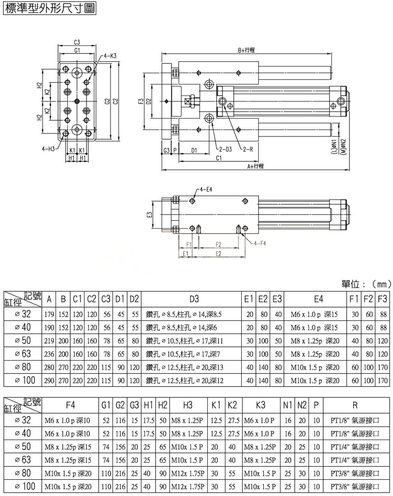 PMGC-32,PMGC-40,PMGC-50,PMGC-63,PMGC-80,PMGC-100,panix导杆气缸组合