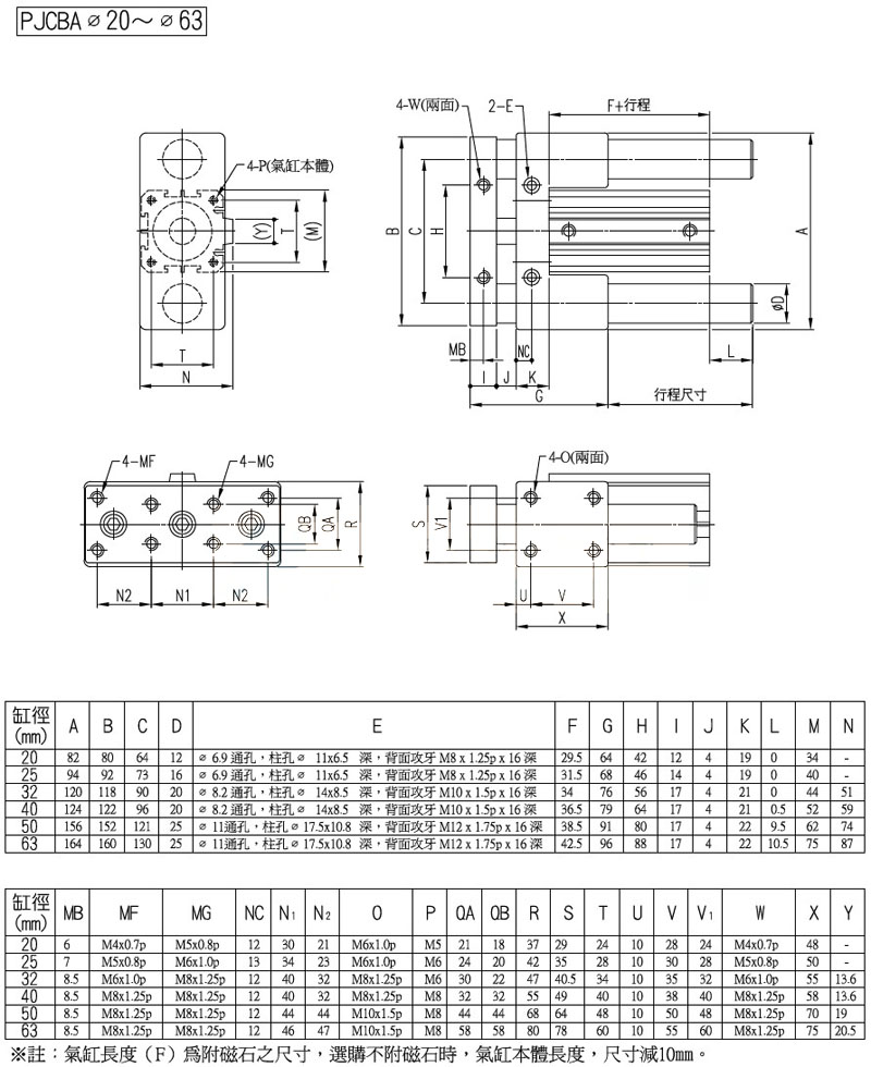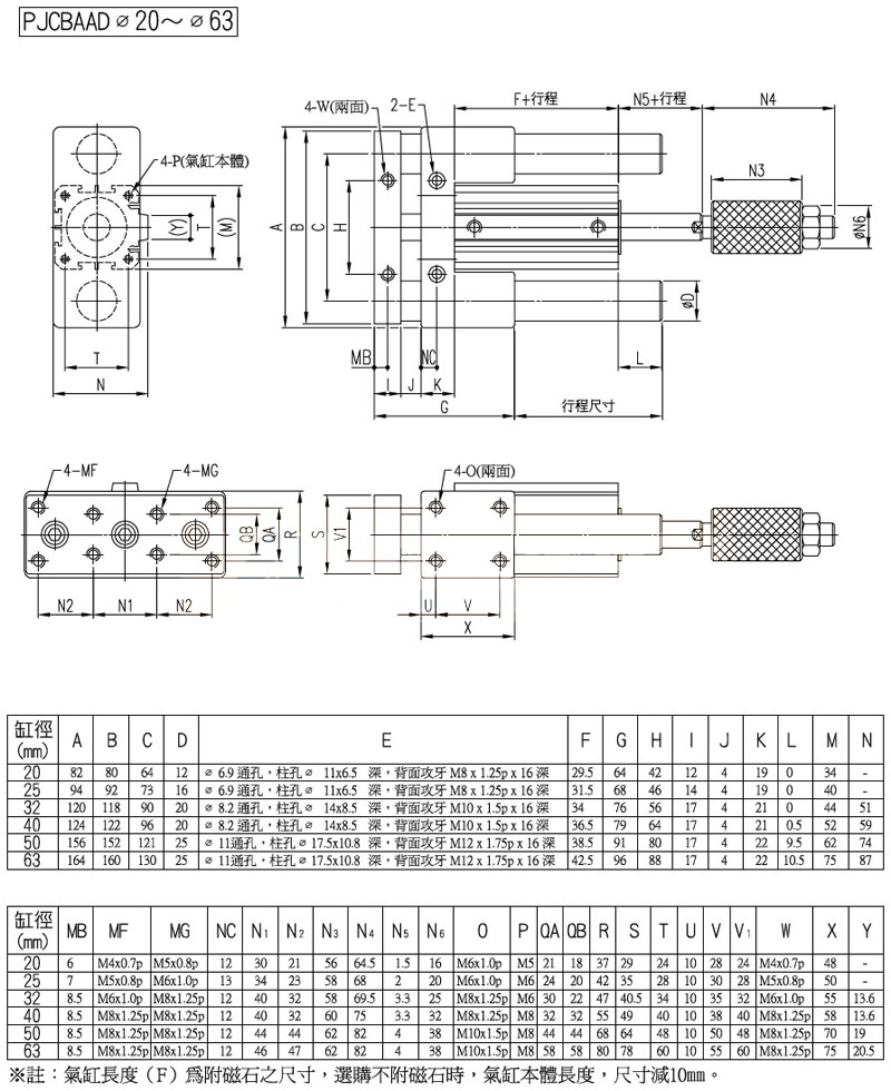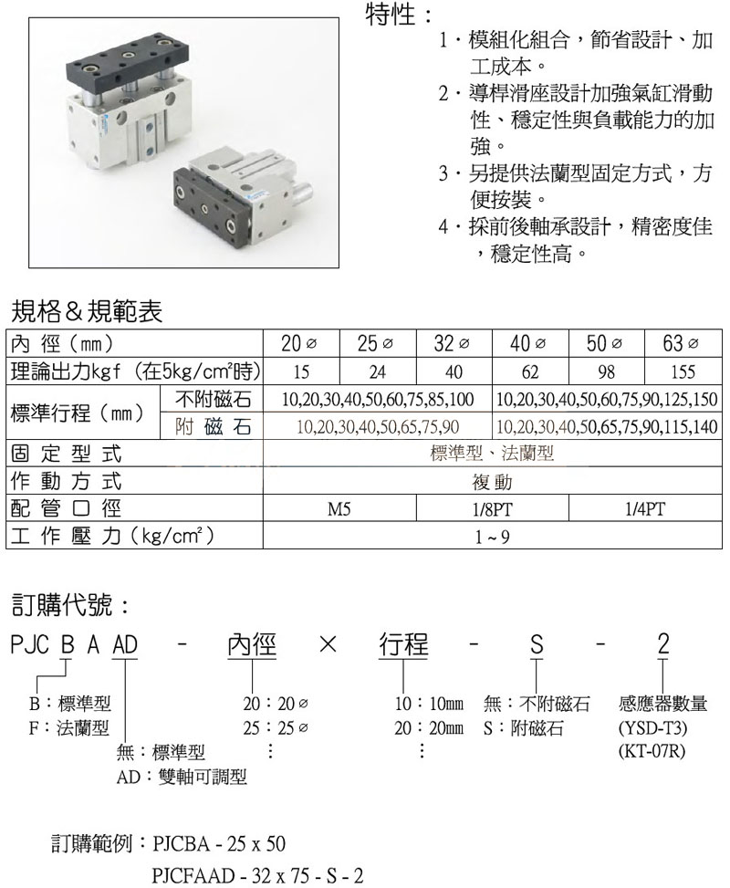 PJCBA-20,PJCFA-32,PJCBA-40,PJCFAAD-20,PJCBAAD-32,panix滑台治具气缸