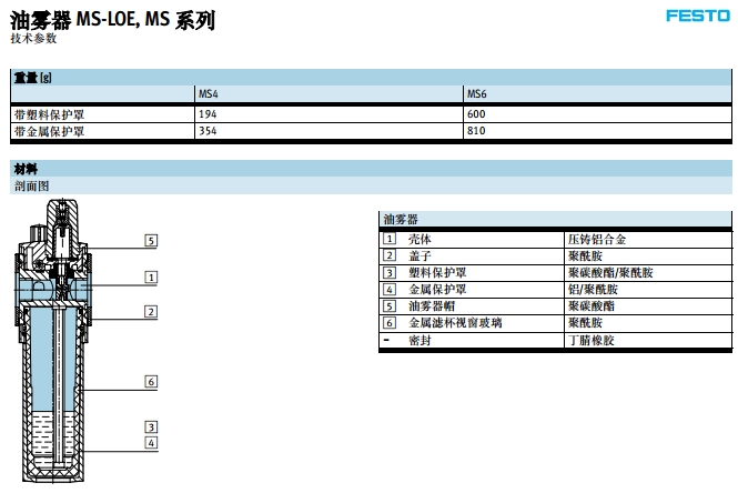 MS4-LOE-1/8,MS6-LOE-1/8,MS4-LOE-3/8,MS6-LOE-3/8,festo油雾器