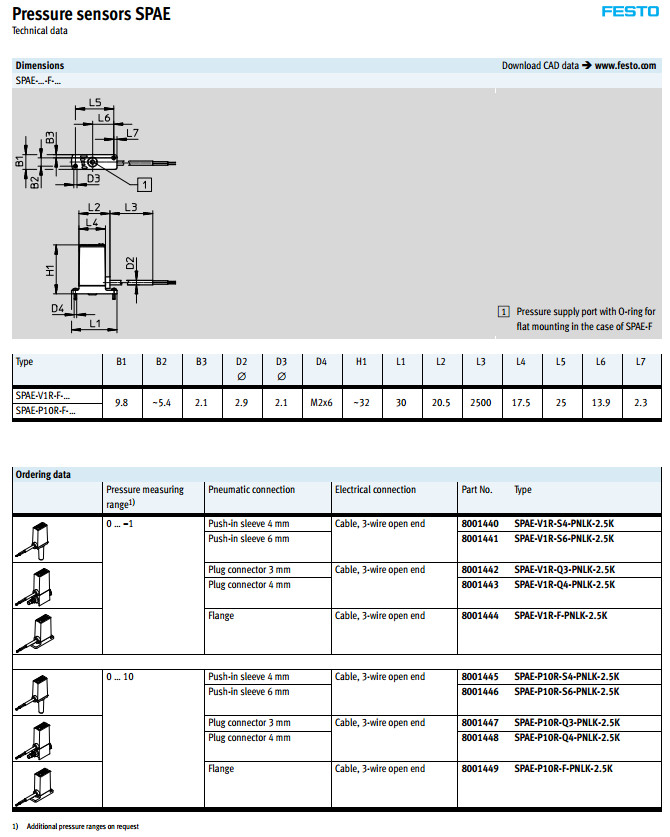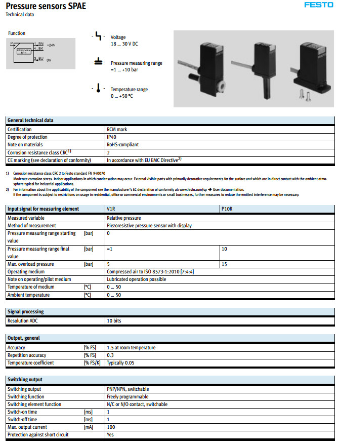 SPAE-P10R-S4-PNLK,SPAE-V1R-Q3-PNLK,SPAE-V1R-F-PNLK,festo压力传感器
