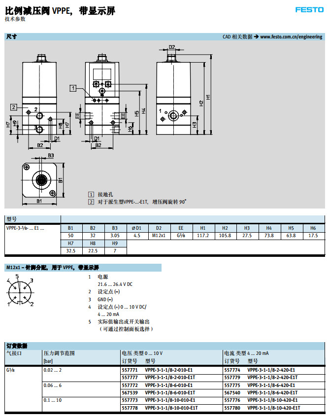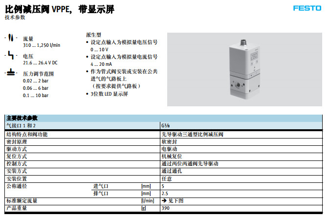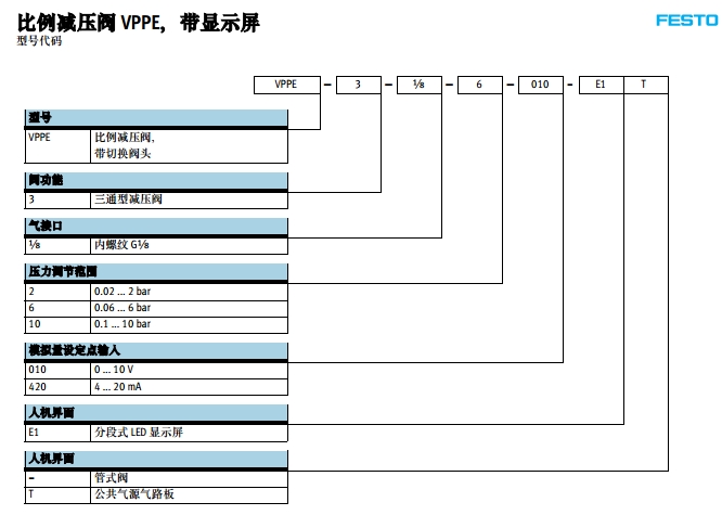 VPPE-3-1/8-6-010,VPPE-3-1/8-2-010,VPPE-3-1/8-10-010,festo比例压力阀