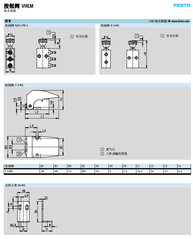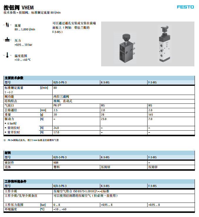 K/O-3-PK-3,K-3-M5,F-3-M5,festo按钮阀