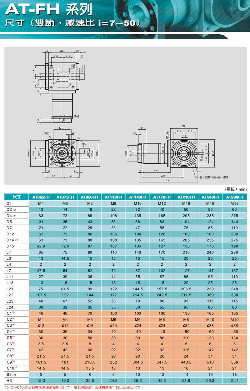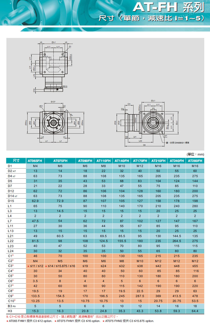 AT065-FH,AT075-FH,AT090-FH,AT110-FH,AT140-FH,AT170-FH,AT210-FH,伺服专用减速机