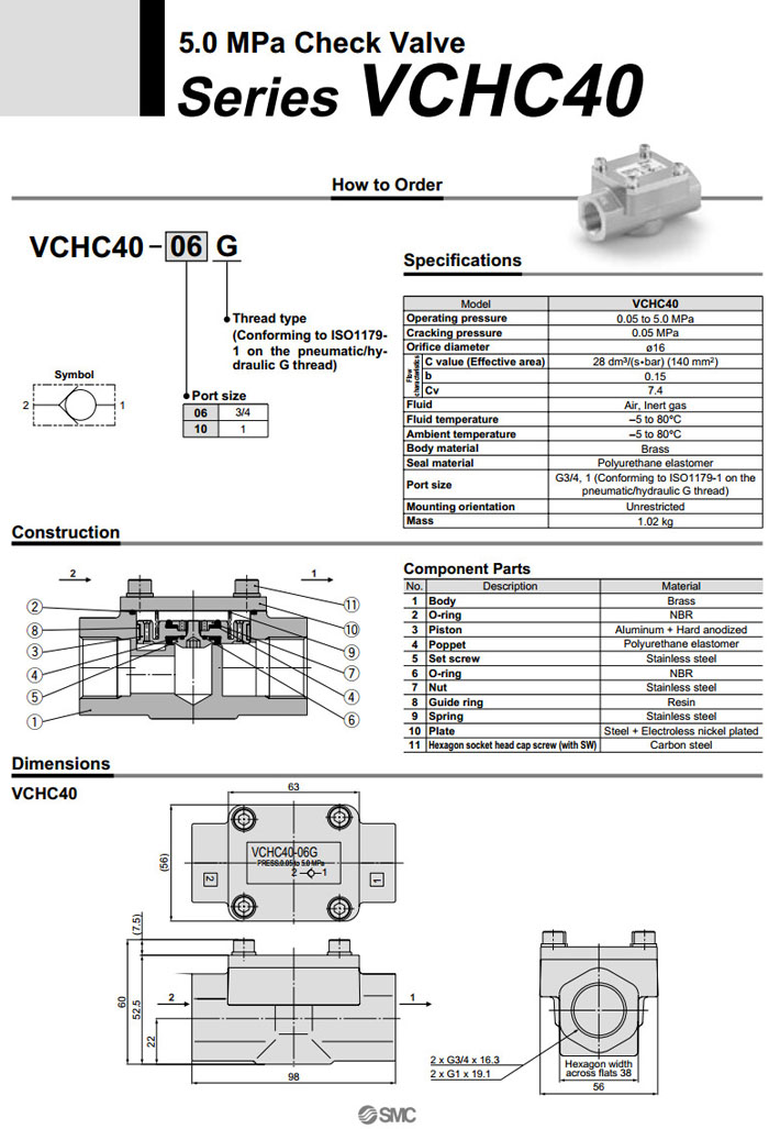 VCHC40-06G,VCHC40-10G,SMC止回阀