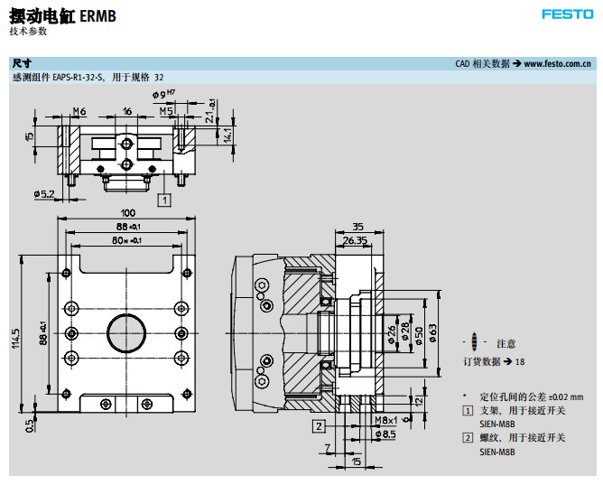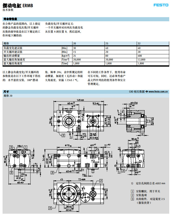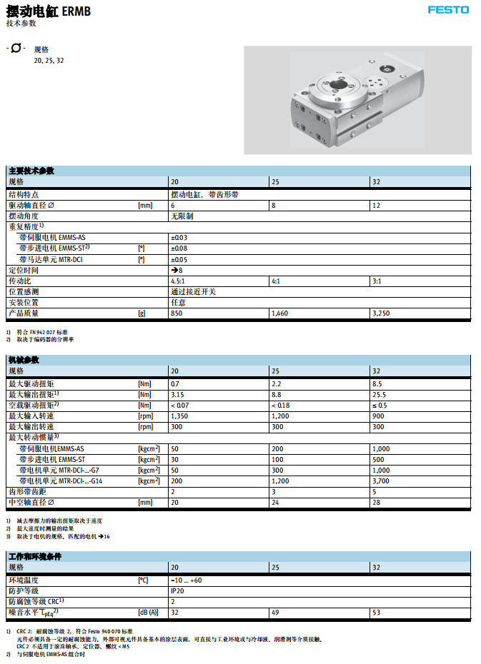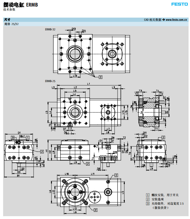 ERMB-20,ERMB-25,ERMB-32,festo摆动电缸