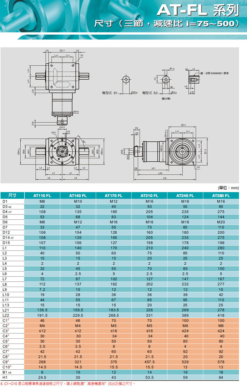 AT065-FL,AT075-FL,AT090-FL,AT110-FL,AT140-FL,AT170-FL,AT210-FL,伺服专用减速机