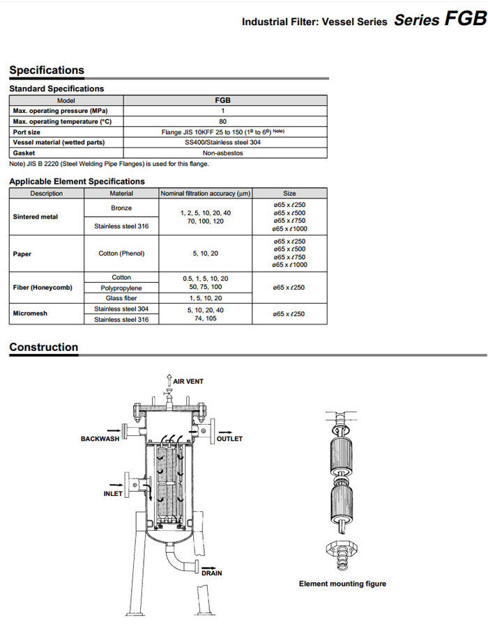 FGBC04,FGBC07,FGBC09,FGBC18,FGBC22,FGBC29,FGBC34,FGBC37,FGBC53,FGBC83,FGBC83D-60,SMC工业用过滤器