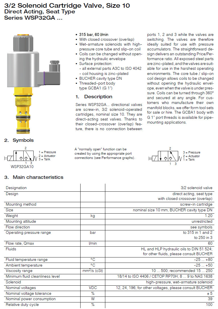 WSP32GA10-1,WSP32GA10V-1,Bucher方向阀