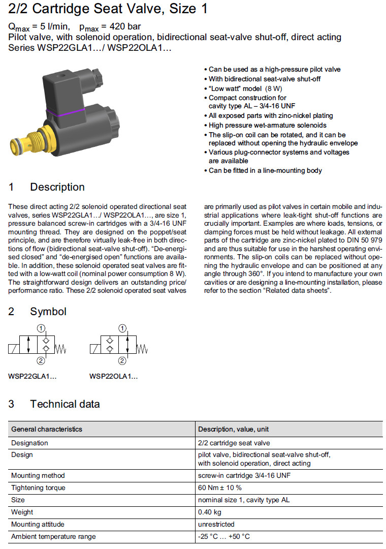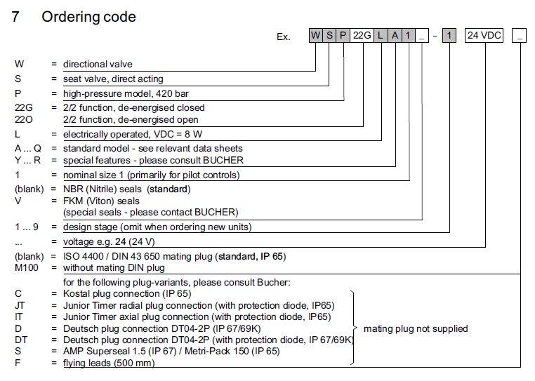 WSP22GLA1-1,WSP22OLA1-1,WSP22GLA1V-1,WSP22OLA1V-1,Bucher方向阀