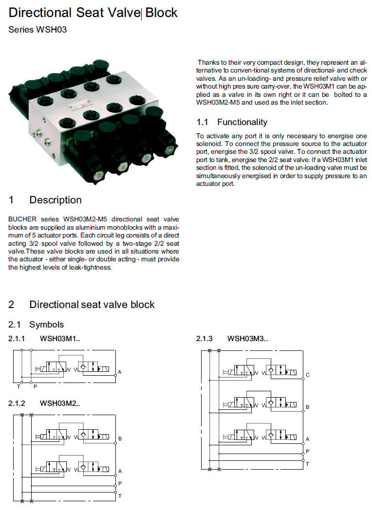 WSH03M1F-0R05,WSH03M2F-0R05,WSH03M3F-0R05,WSH03M4F-0R05,WSH03M5F-0R05,Bucher方向阀