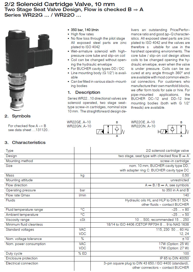 WR22GEDA-10-1,WR22OEDA-10-1,WR22GNDA-10-1,WR22ONDA-10-1,WR22GECA-10-1,Bucher方向阀
