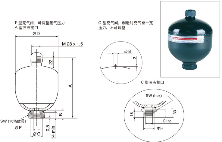 ELM2.8-250/90/AF,ELM2.8-350/90/AF,ELM3.5-250/90/AF,隔膜式蓄能器
