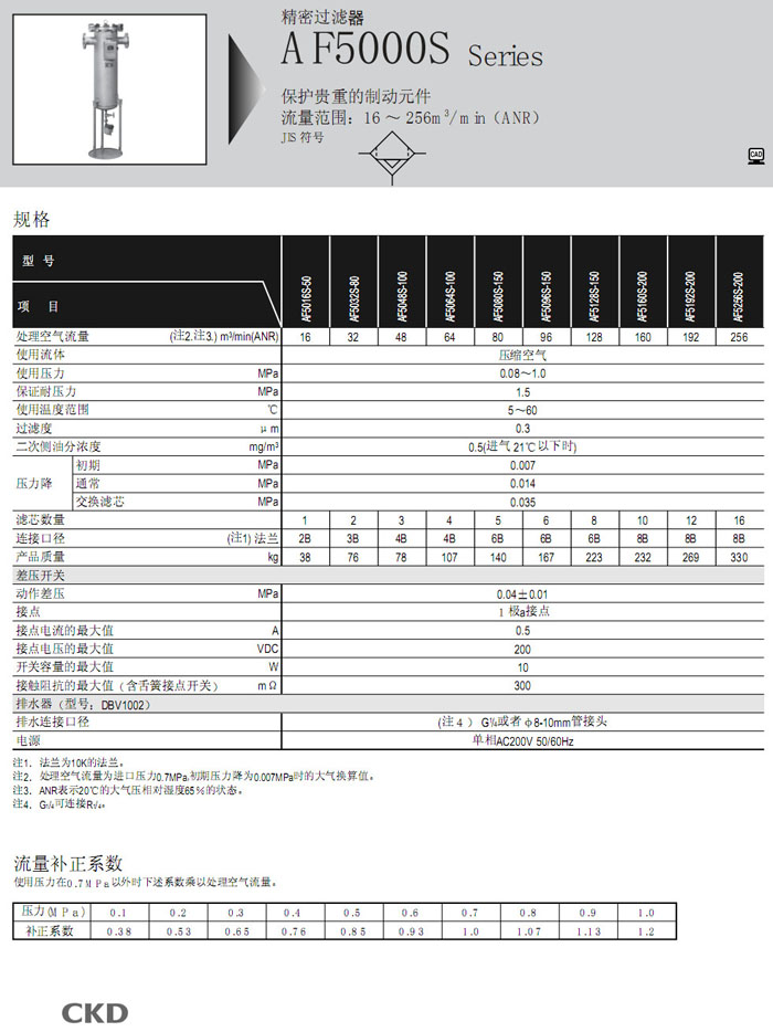 AF5016S,AF5032S,AF5048S,AF5064S,AF5080S,AF5096S,AF5128S,AF5160S,AF5192S,AF5256S,CKD精密过滤器
