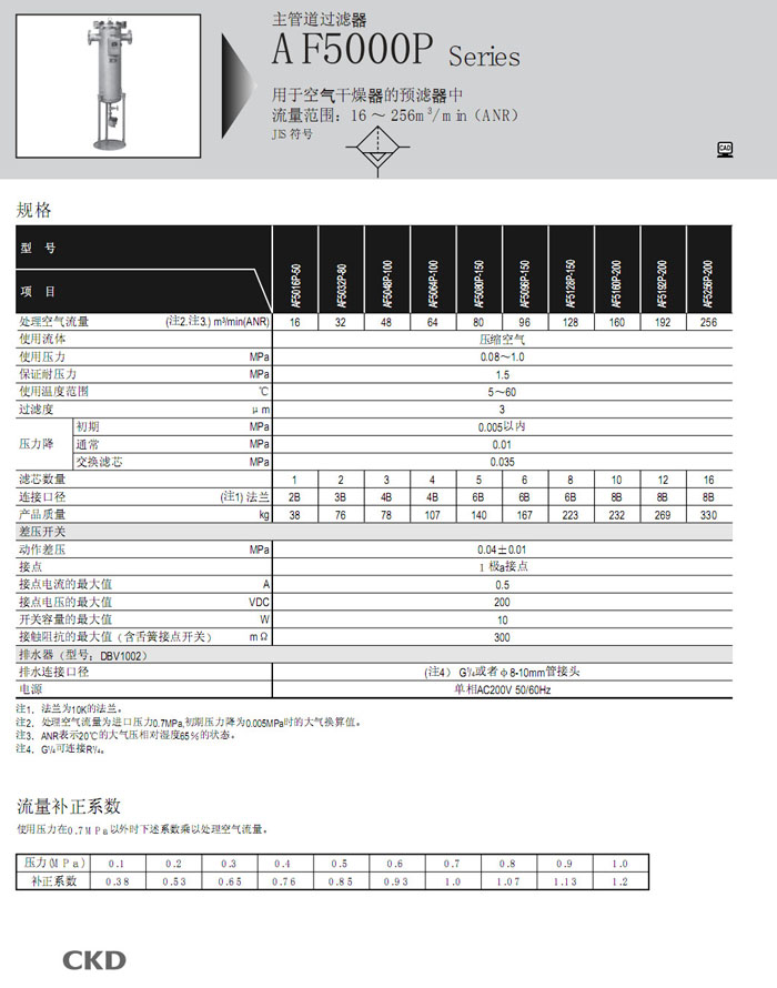 AF5016P,AF5032P,AF5048P,AF5064P,AF5080P,AF5096P,AF5128P,AF5160P,AF5192P,AF5256P,CKD主管道过滤器