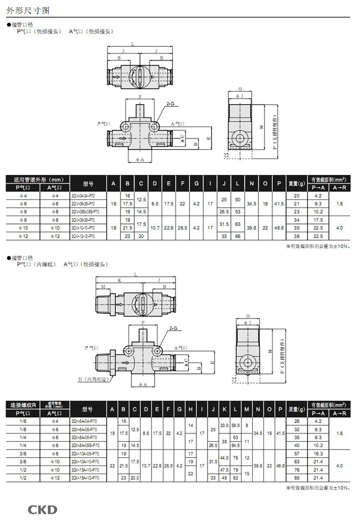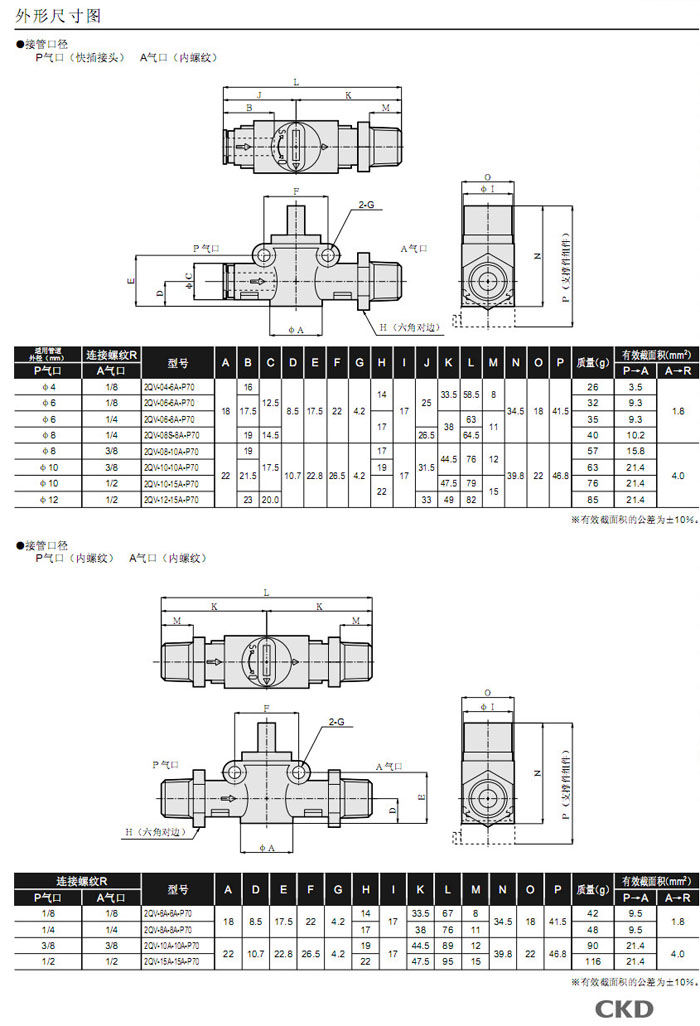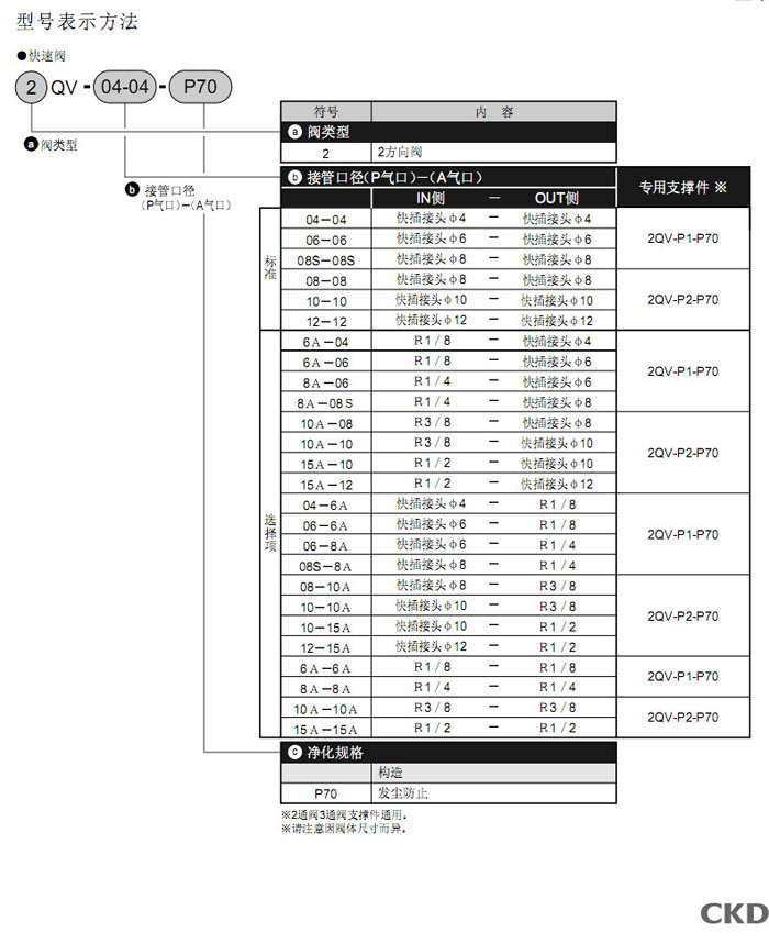 2QV-04-04-P70,2QV-06-06-P70,2QV-08S-08S-P70,2QV-08-08-P70,2QV-10-10-P70,2QV-12-12-P70,CKD快速阀