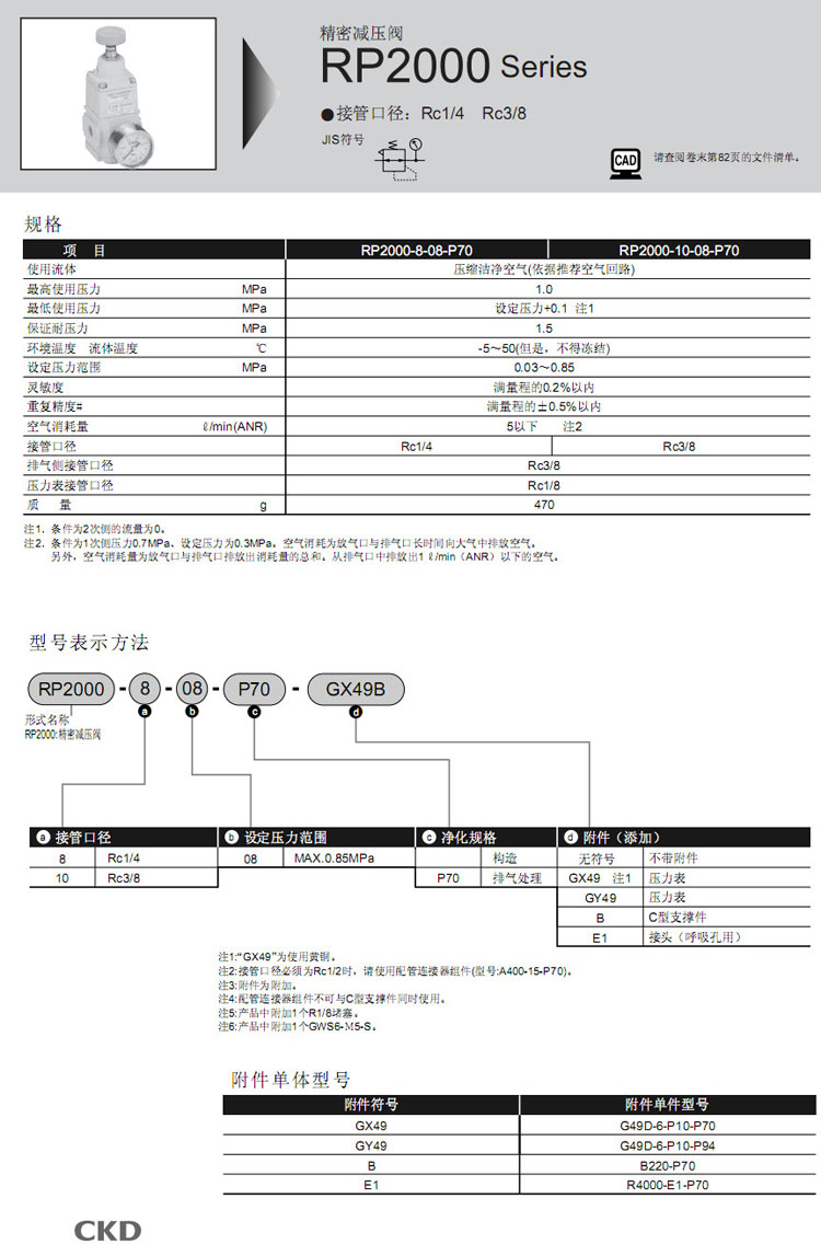 RP2000-8-08-P70,RP2000-10-08-P70,CKD精密减压阀