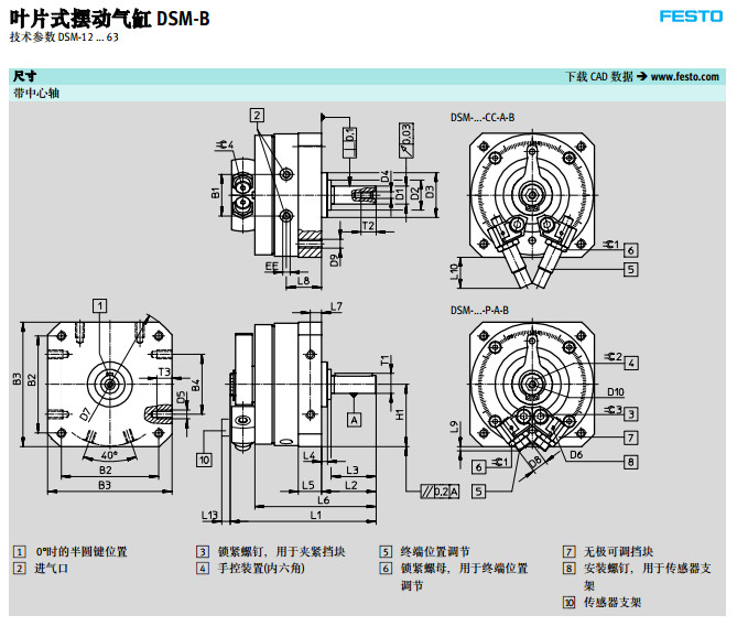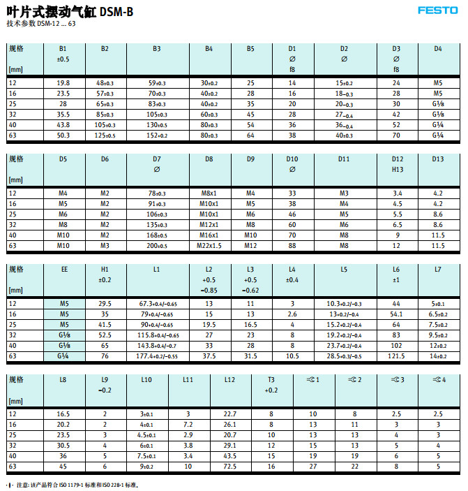 DSM-12,DSM-16,DSM-25,DSM-32,DSM-40,DSM-63,festo叶片式摆动气缸