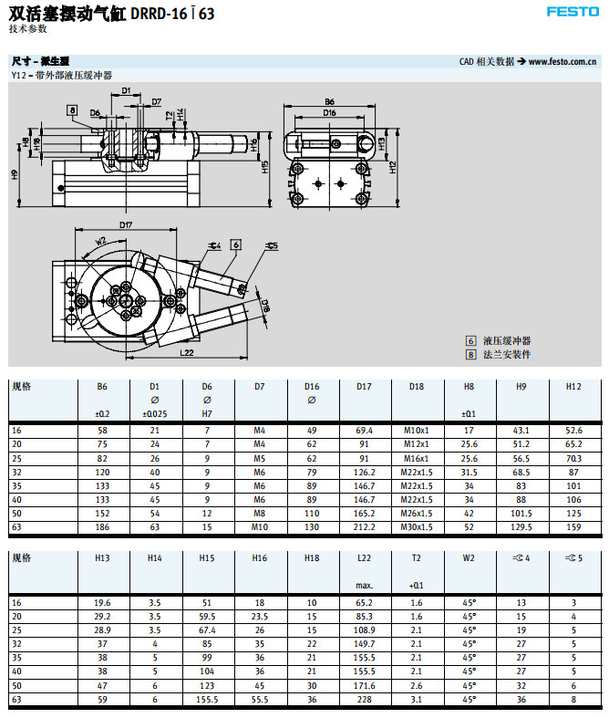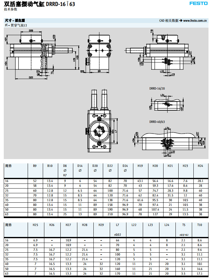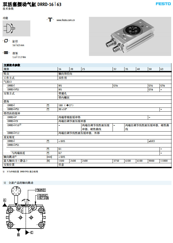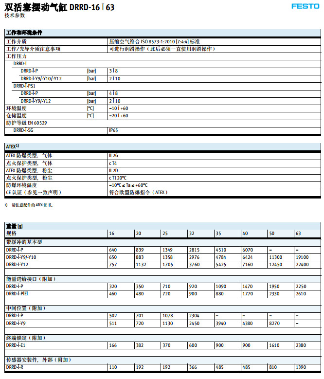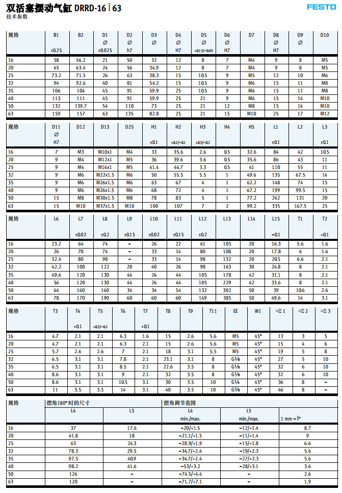 DRRD-16,DRRD-20,DRRD-25,DRRD-32,DRRD-40,DRRD-50,DRRD-63,festo摆动气缸