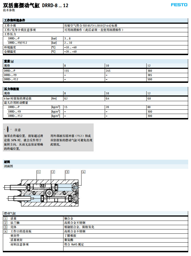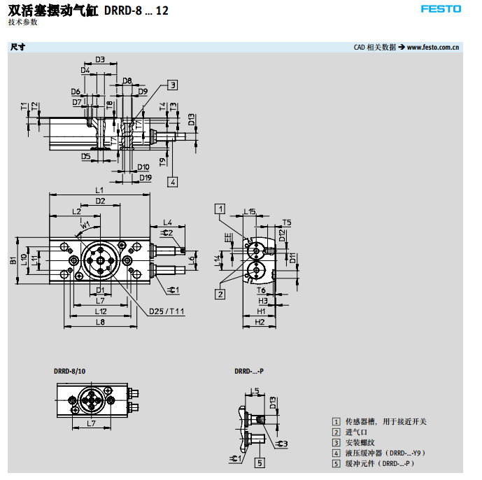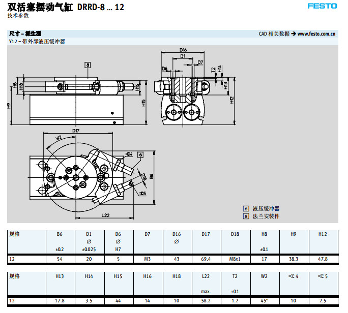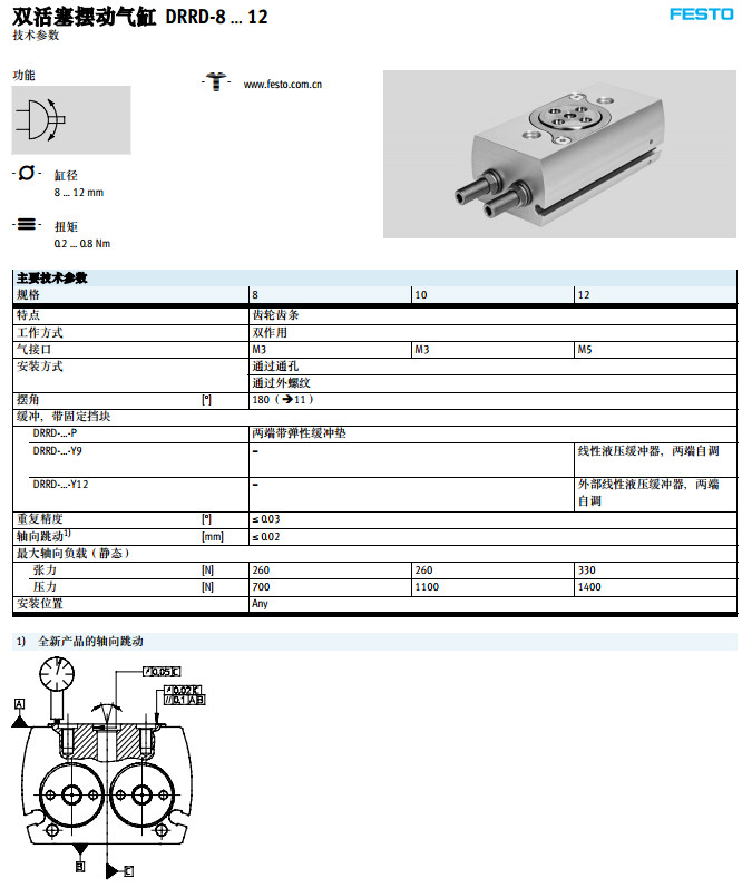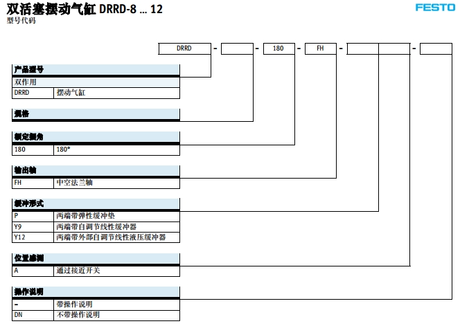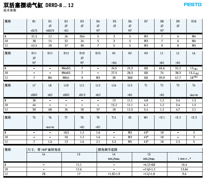 DRRD-8-180-FH-PA,DRRD-10-180-FH-PA,DRRD-12-180-FH-PA,festo摆动气缸