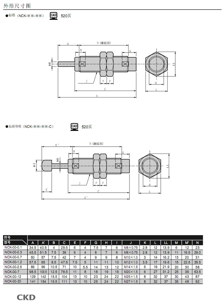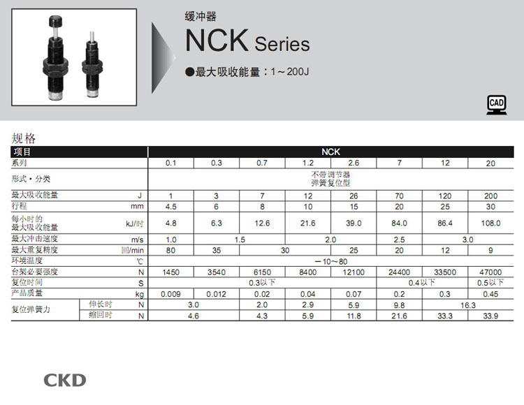 NCK-FA-0.1,NCK-FA-0.3,NCK-FA-0.7,NCK-FA-1.2,NCK-FA-2.6,NCK-FA-7,NCK-FA-12,NCK-FA-20,CKD缓冲器
