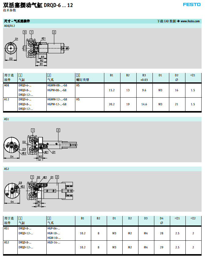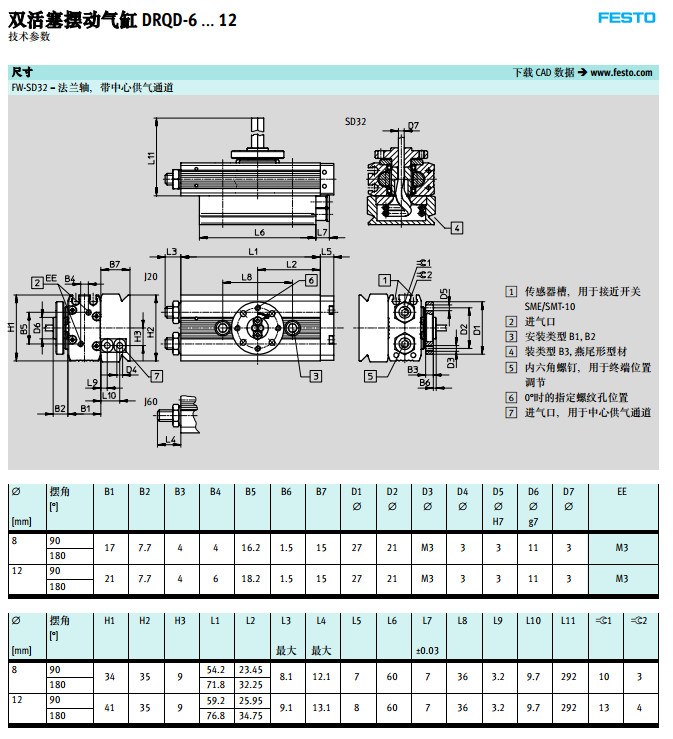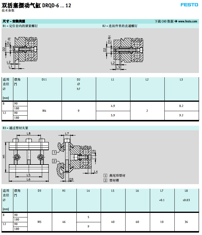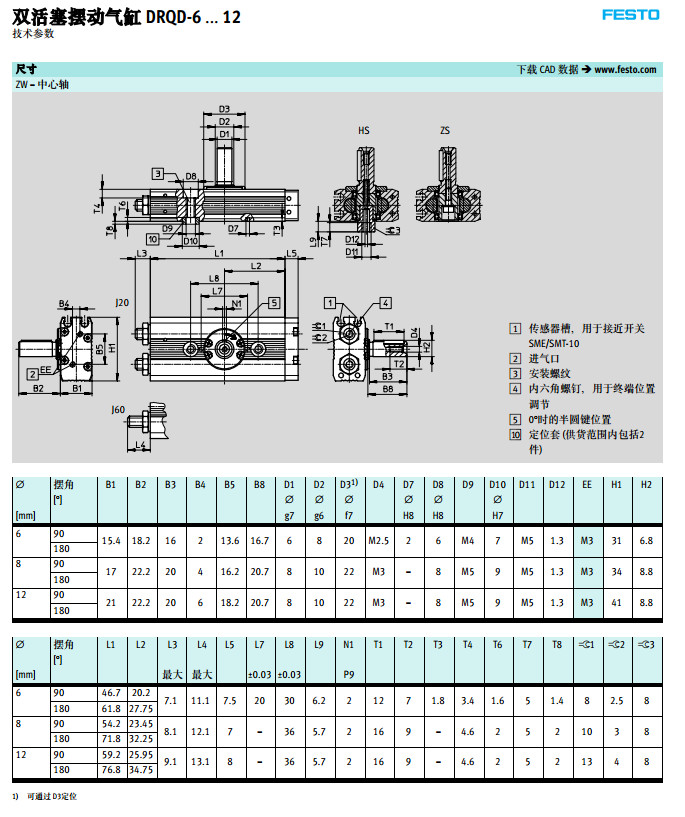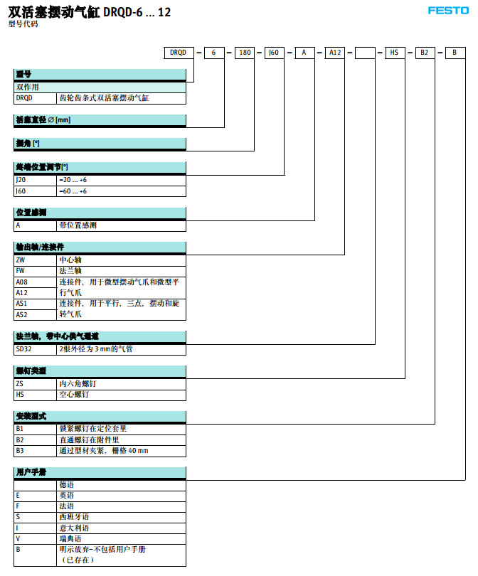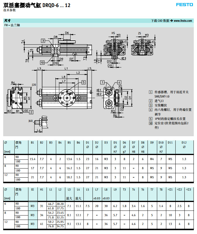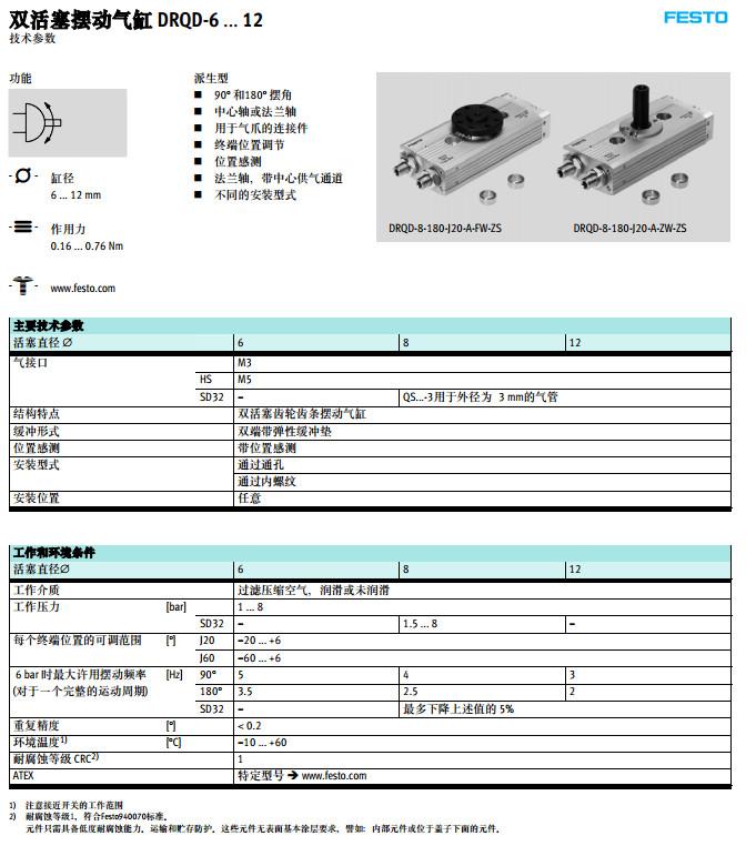 DRQD-6-180-J20,DRQD-8-180-J60,DRQD-12-180-J20,DRQD-6-180-J60,festo摆动气缸