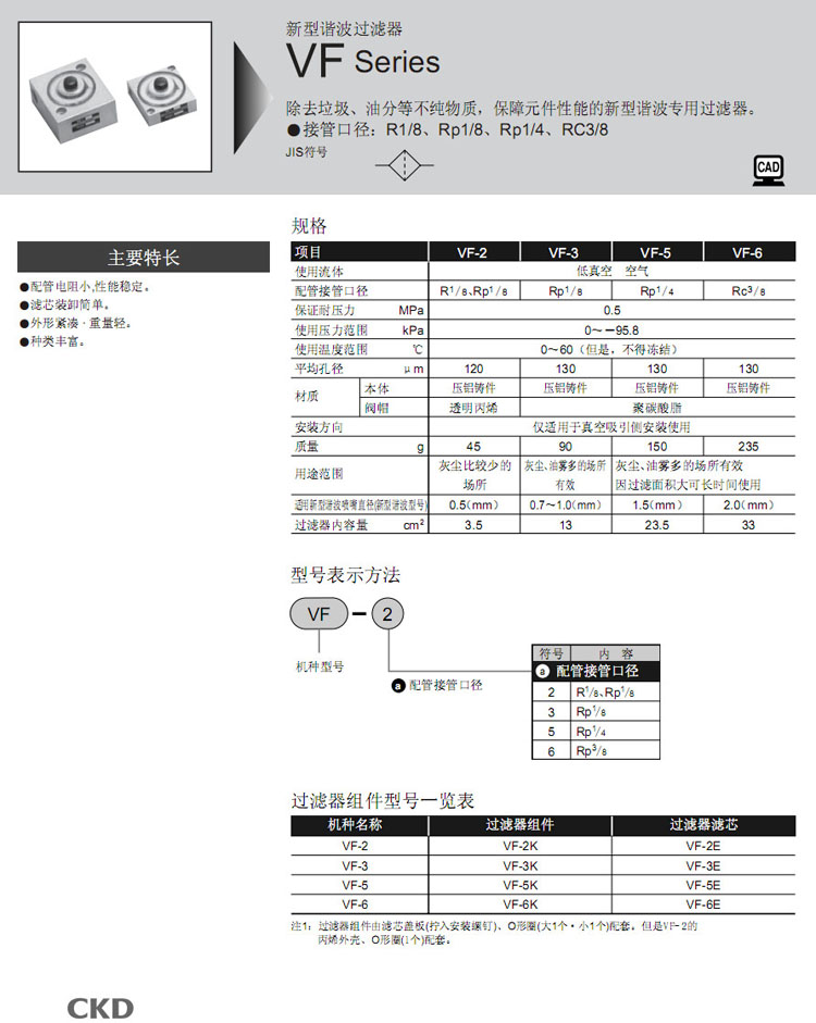 VF-2,VF-3,VF-5,VF-6,CKD过滤器