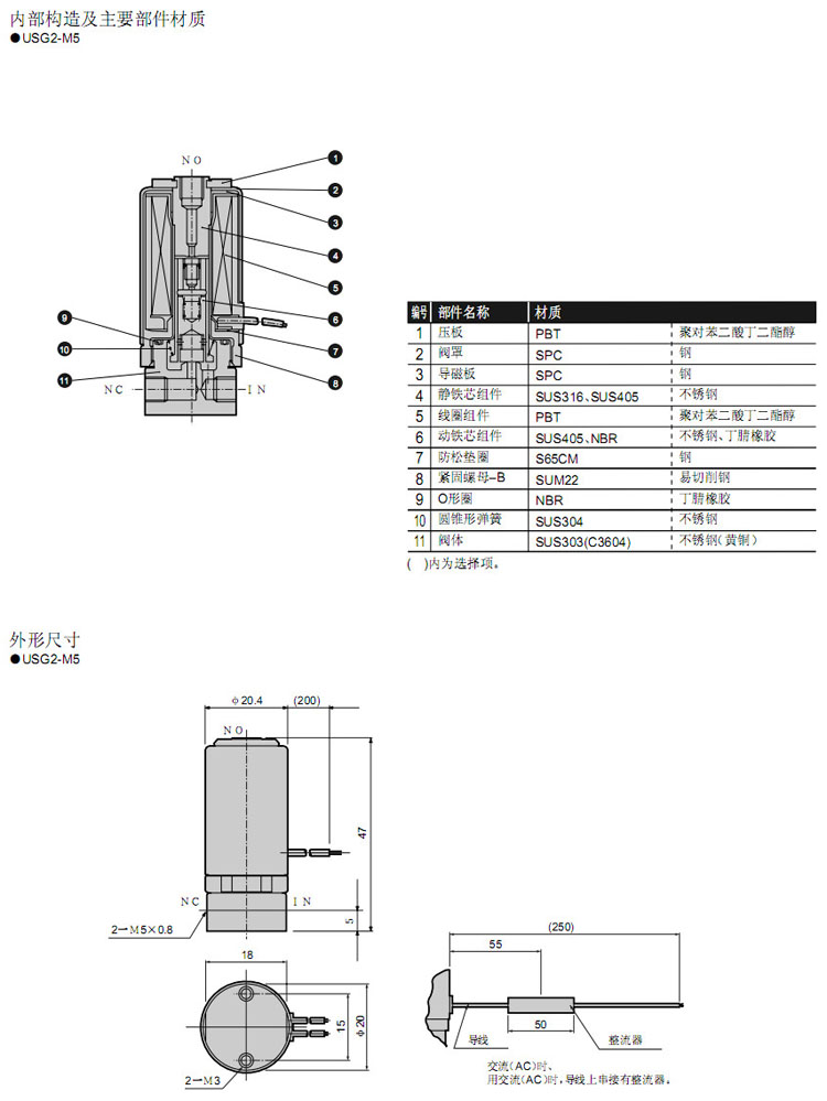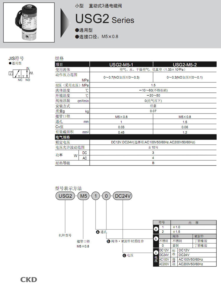 USG2-M5-1,USG2-M5-2,CKD直动式3通电磁阀