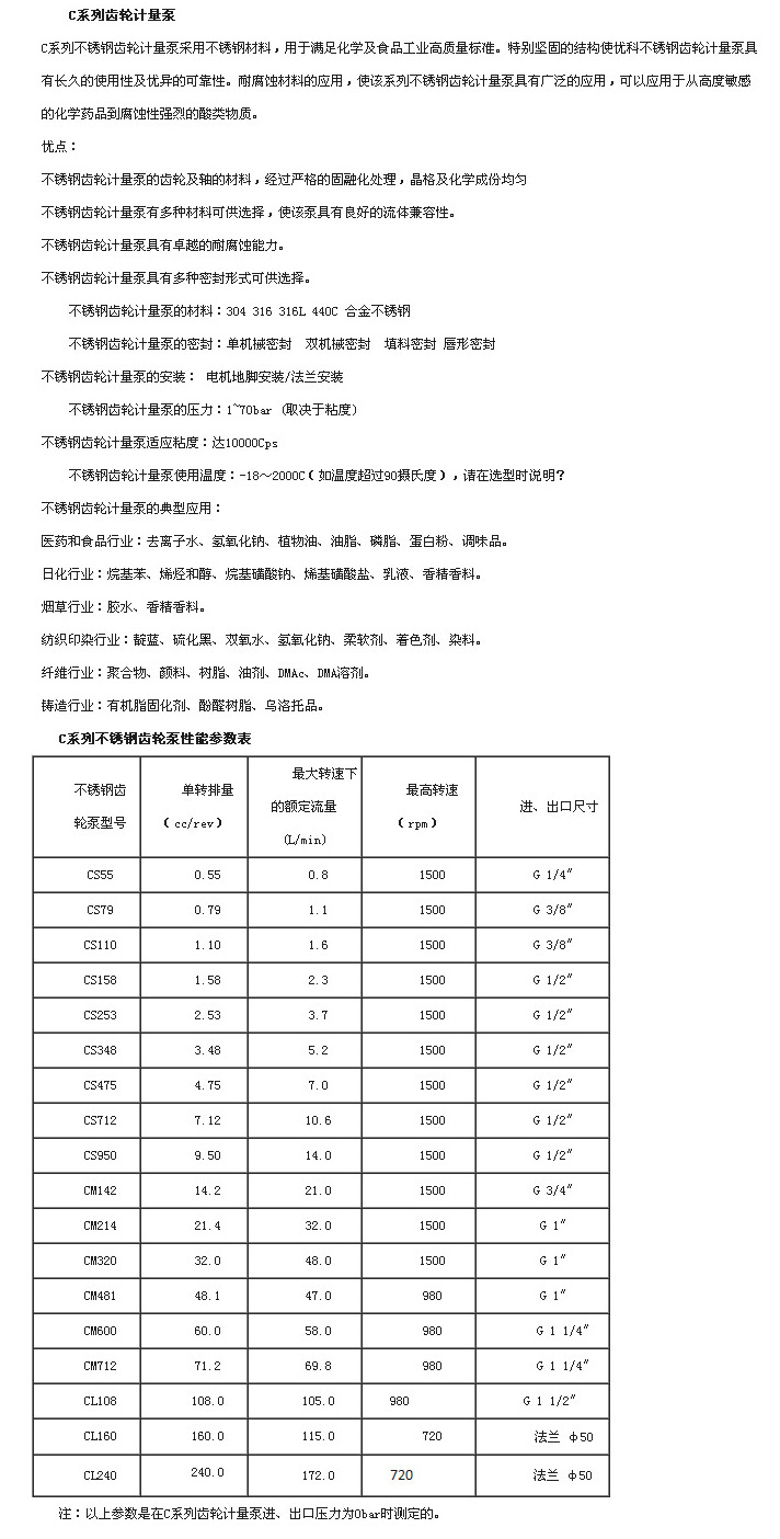 CS55,CS79,CS110,CS158,CS253,CS348,CS475,CS712,CS950,CM142,CM214,CM320,CL108,CL160,CL240,齿轮计量泵