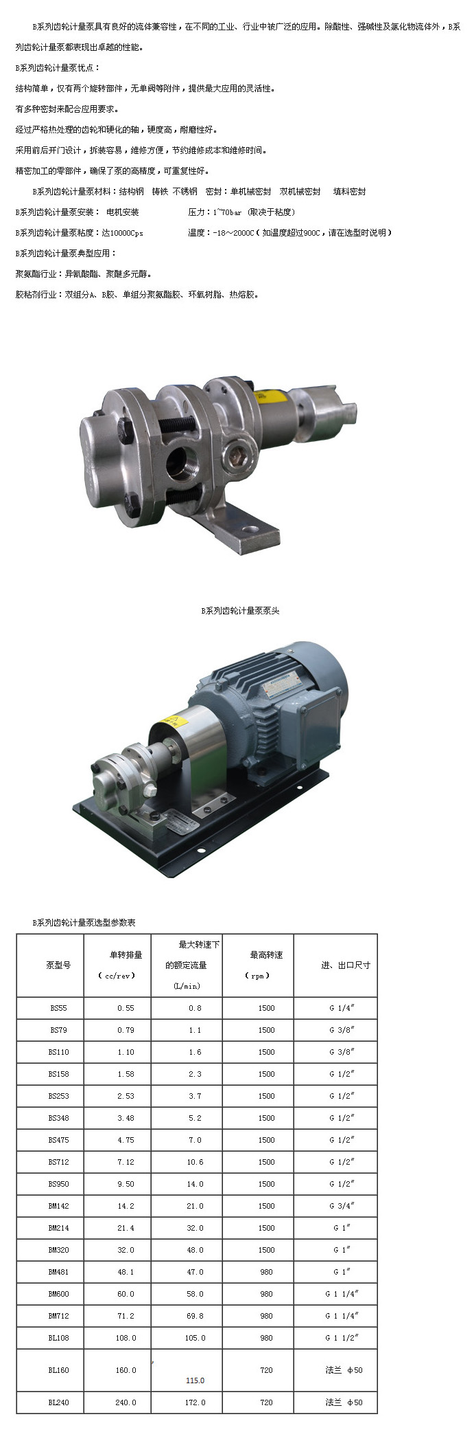 BS55,BS79,BS110,BS158,BS253,BS348,BS475,BS712,BS950,BM142,BM214,BM320,BL108,BL160,BL240,齿轮计量泵